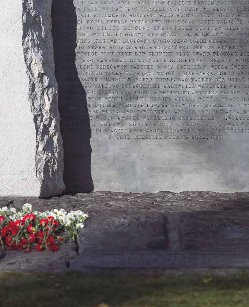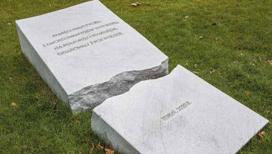 Przedstawiamy także formy upa miętnienia ofiar tamtych wydarzeń, z których wiele niestety pozostaje do dziś bezimiennych. Szczególną uwa gę poświęcamy toruńskiemu Parko wi Pamięci Ofiar Zbrodni Pomorskiej 1939. W tym miejscu zamordowanych upamiętnia osiem instalacji - pomni ków. Wszystkie razem tworzą niezwy kłą przestrzeń do refleksji nad tamty mi wydarzeniami. Niosą one uniwer salne przesłanie do rozważań nad na turą i mechanizmami masowych, mo tywowanych ideologicznie zbrodni.