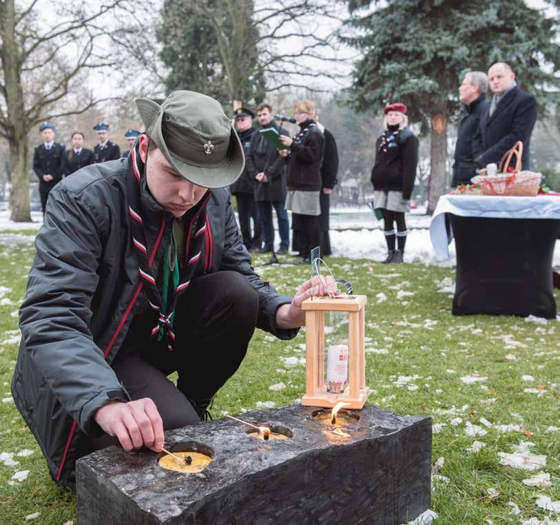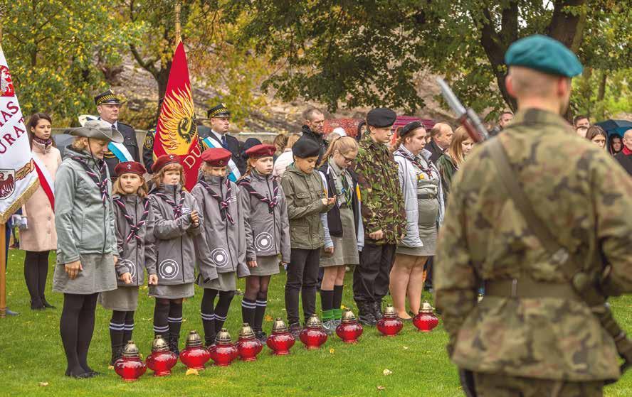 1939 roku, aby dać wyraz wdzięczności tym, którzy poświęcili swoje życie dla Oj czyzny, zamordowani przez okrutnych niemieckich okupantów. Przywołujemy ich pamięć w setną rocznicę odzyska nia Niepodległości przez Polskę. Trud ne to było stulecie, jednak dziś żyjemy w kraju wolnym i bezpiecznym. Nie by łoby dzisiejszej niepodległej Polski bez ofiar ludzi, którzy swoją walką i mę czeństwem dali świadectwo najwięk szego patriotyzmu.
