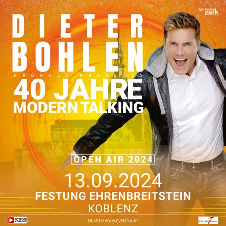 Eintritt: 52,63 Euro zzgl. VVK-Entgelte / AK: 66,00 Euro Ticket inklusive koveb Buspendelverkehr zwischen Löhr Center und Festung Ehrenbreitstein. Die Seilbahn fährt bis 23:30 Uhr