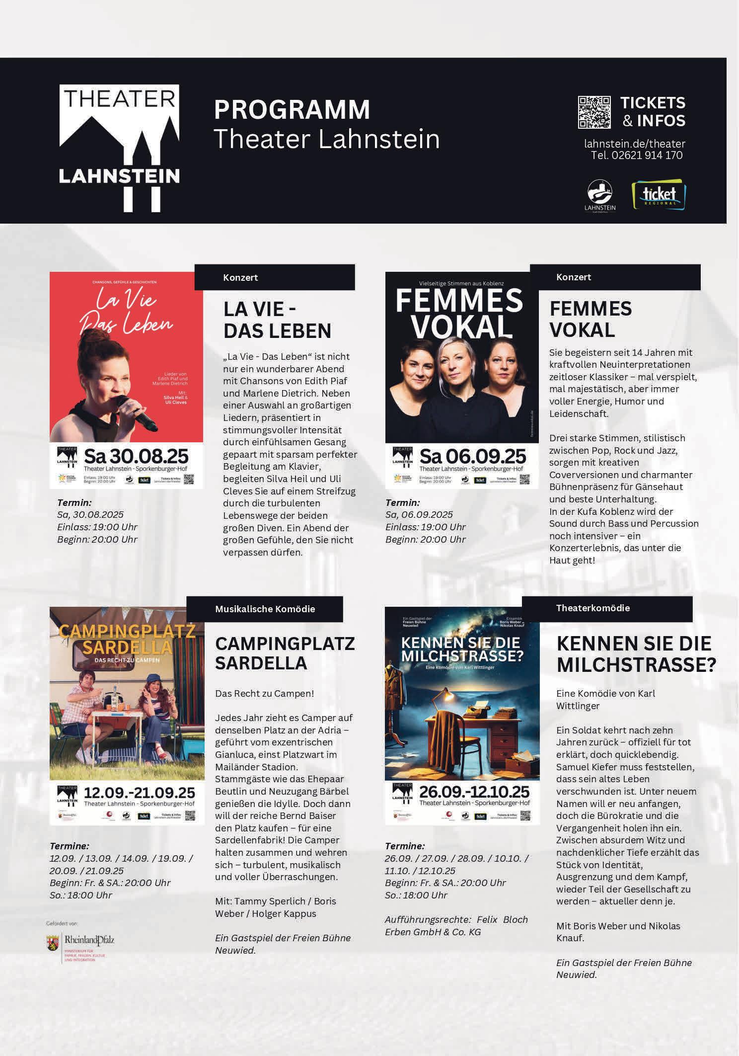Auch werden wir wieder die erfolgreichen und bekannten Spielstätten wie u. a. Burg Namedy, Abtei Rommersdorf und den Kurpark Bad Salzig erklingen lassen.