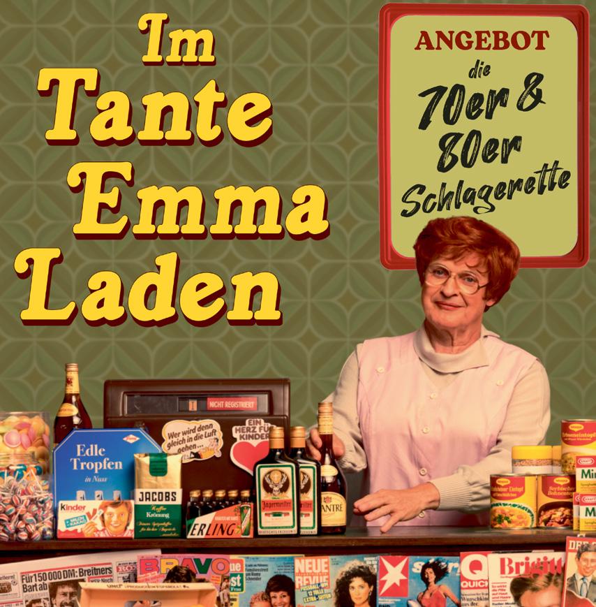 „Im Tante-Emma-Laden“ ist genau das Richtige für einen beschwingten Jahresausklang. Denn wenn Sie bei Gitte, Udo Jürgens, Katja Ebstein oder Jürgen Marcus direkt Melodien im Kopf haben, dann dürfen Sie sich unsere Schlagerette auf keinen Fall entgehen lassen. Frank Eller, Diane Keßler, Carina Gerwig, Sascha Stead, Sascha Stegner und Felix Scheuer laden ein, zu einer lustigen und nostalgischen Zeitreise in die beginnenden 1980er Jahre.