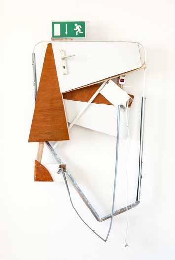 Gefaltete Flächen kennzeichnen das skulpturale Werk von GEORG EISENMENGER aus Bonn. Sie entstehen aus Wellpappe, Kunstharz und Pigmenten und visualisieren die dramatische Wirkung von Bewegung und die Bedingtheit jedes einzelnen Elementes in der Aus- und Fortführung der Bewegung.