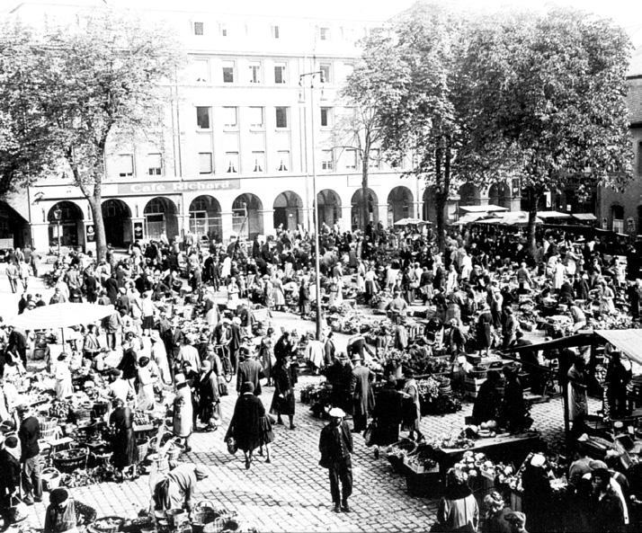 Im Zuge der frz. Revolution wurde Koblenz frz. Departement-Hauptstadt, Teil der Republik. Die Flächen der ehemaligen kurfürstlichen Münzprägeanstalt sowie die Parkanlage vor dem Stadtpalais Metternicher Hof (Geburtshaus des Fürsten von Metternich, Außenminister von Österreich) lagen brach und die Bevölkerung begann hier ihren Großmarkt zu installieren.