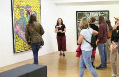 Im Anschluss bewegt man sich als Besucher*innen beschwingt bei Musik und Cocktails durch Bilder und Skulpturen in der Happy Hour …