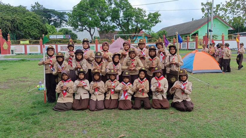 Adik-adik Siaga bekerja sama mendirikan tenda