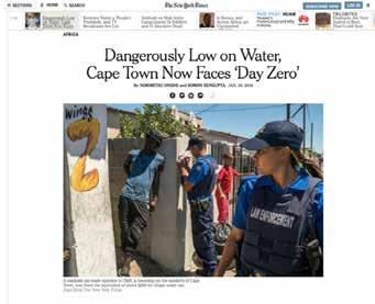 A clear implication of the news reportage on the water crisis, and the hook via which it garnered so much attention in the global media, is that in looking at the situation in Cape Town we are looking at the future. I would argue that Cape Town is one of a small number of locations in which we can begin to read Anthropocene futures: the “ground zeros” of climate change. This makes the unfolding story compelling, quite apart from the potential human tragedy. Many news reports followed Western Cape Premier Helen Zille in predicting a kind of Mad Max scenario: local mafias and warlords seize control of water points to extort money from city residents as a black market in drinking water develops and a criminal underground takes charge of a weakly policed and poorly managed city. This may indeed come about – is indeed already beginning to happen – but another possibility exists. For residents of Cape Town’s vast informal settlements, the current situation is not new; they have always dealt with the inadequate provision of water, queuing at stand-pipes and using communal loos. This is a decades-old situation that dwellers in the suburbs have been happy to ignore. In an absolutely embodied way, the current crisis forces the middle classes to experience what it means to live with limited water: washing in a plastic bucket, flushing every other day. In this scenario, perhaps water becomes the great leveler, forcing the wealthy and oblivious to empathize with what it means to be poor and black, something that two and a half decades of “rainbow nation” rhetoric has signally failed to accomplish. Indeed, in an intriguing twist, city managers have announced that, come Day Zero, should the water to suburban households be cut off, water will continue to flow to Cape Town’s informal settlements. So, while the wealthy sink boreholes, buy water tanks, and put