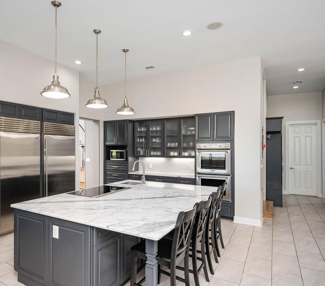 • Custom Cabinetry and Built-in Speakers in Kitchen and Living Room