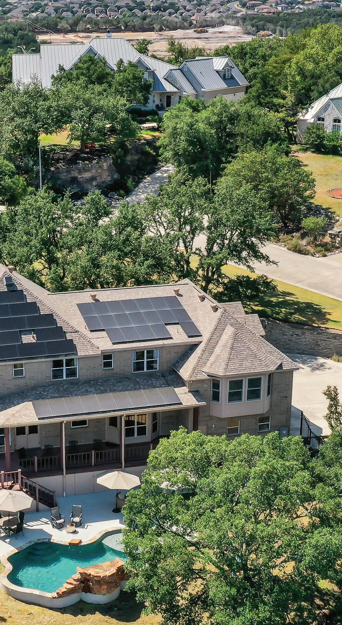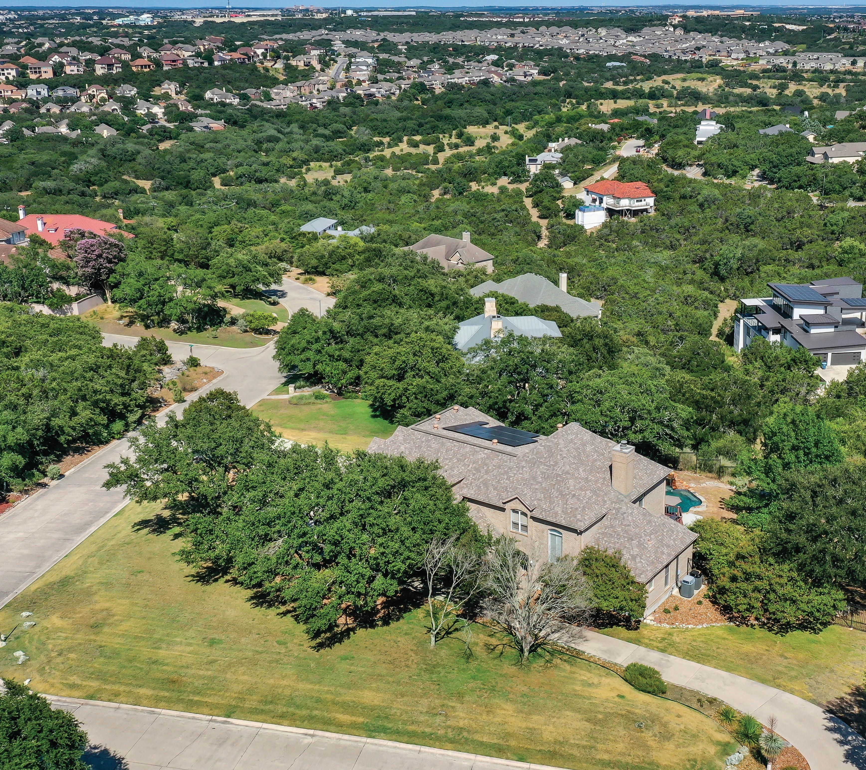 Welcome to the Estates at Champions Run, where luxury living awaits you in this exquisite custom home. Nestled on an expansive corner lot, this remarkable residence boasts five bedrooms and four and one-half bathrooms, all crafted with meticulous attention to detail by renowned builder Robert Weiss. The attention to detail is evident throughout, with exquisite rich paneling, custom built-in features, and a grand entry staircase that sets the stage for the grandeur within. The chef-inspired kitchen has been flawlessly updated with a designer’s touch, showcasing an oversized marble island, custom cabinetry, and top-of-the-line stainless-steel appliances. Retreat to the primary suite and indulge in breathtaking hill country views, complemented by a spa-like ensuite that offers a sanctuary of relaxation. Upstairs, discover a game room and loft, providing additional space for entertainment and leisure. Practical amenities abound, including a threecar garage with an added air-conditioned workshop and solar panels for energy efficiency. Step outside to discover a backyard oasis designed for hosting unforgettable gatherings, complete with a covered deck, a stunning pool featuring an incredible waterfall, and multiple sitting areas where you can unwind and soak up the beauty of your surroundings. This magnificent home is the epitome of luxury and offers an unparalleled living experience in one of the most desirable neighborhoods.