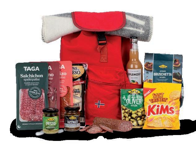Westfaler spekeskinke 70g, Rødvinspølse 200g, Elg Spekepølse 200g, Rødvinsgele Gourmet Lisa 280g, Potetflatbrød 210g.