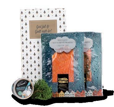 Innhold Gravet Laks skivet 100g, Røkt Laks skivet i 100g, Eriks Gravlakssaus 200ml.