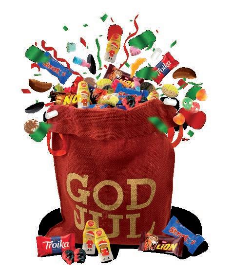Pakkes i God jul pose. JULENISSENS KONFEKTFAVORITTER