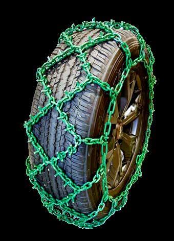 • Enkel å montere uten verktøy da kjettingen er tilpasset dekkdimensjon