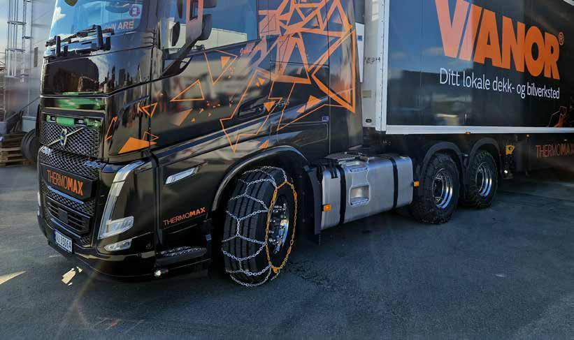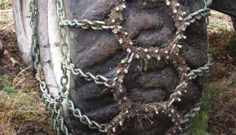 • Det kan lønne seg å fylle i mer luft i dekkene i kjetting sesongen. Radialdekk med lite luft sliter hardt på tverrlenkene i kjettingen.
