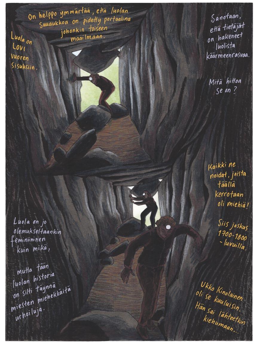 Sanna Hukkanen & Inkeri Aula: Fanni Devil’s Church / Have you noticed the shape of Lake Pielinen on the map? / I’ve been nervous for days, wondering if I dare to crawl in there.