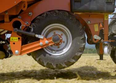 El sistema de auto dirección del rodillo de apoyo puede pivotar 15° a derecha e izquierda. La autodirección pasiva y el hecho de ser estirado (no empujado) reducen la necesidad de potencia y el consumo de combustible.