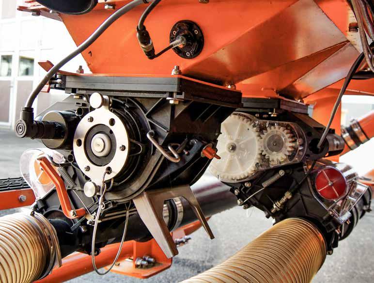 ELDOS, el dosificador óptimo Las tolvas frontales SH1600 y SH2200 están disponibles con uno o dos dosificadores ELDOS. En la versión dúo, se instalan dos ELDOS para obtener mayores índices de aplicación. El dosificador ELDOS, es de accionamiento eléc trico y es totalmente compatible con ISOBUS en la versión e-com. Es posible el encendido y apagado automático mediante GEOCONTROL y una señal GPS que evita los solapes de siembra en las cabeceras. Sensores especiales aseguran una perfecta funcionalidad, todo ello supervisado desde la cabina del tractor.