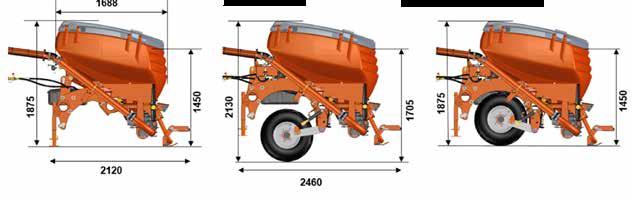 Tipo de máquina modular modular modular modular Capacidad de tolva (litros) 1.600 2.200 1.600 2.200 Ancho en carretera (m) 2,75 2,75 2,75 2,75 Peso propio (kg) 658 678 732 752