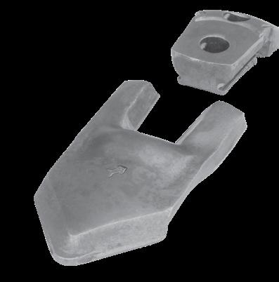Cambios rápidos y fáciles. Las puntas se cambian en pocos segundos. Se consigue una reducción del 90% del tiempo dedicado a cambios de desgaste en máquinas de 5 y más cuerpos o trabajando en terrenos muy agresivos.