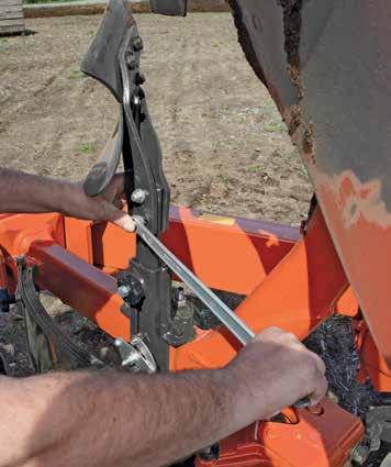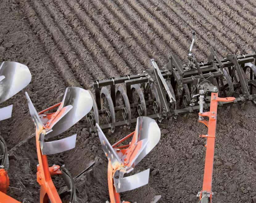 Una labor de arado perfecta implica el ajuste de las rasetas a la profundidad correcta. Las rasetas cortan la tierra superficial para colocarla eficazmente en el fondo del surco. El ajuste de la profundidad de las rasetas Kubota es centralizado, fácil y rápido en los nuevos modelos.