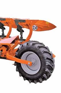 La gran rueda trasera permite una gran estabilidad, especialmente en condiciones de suelo húmedo y blando. Limita el hundimiento y la compactación. El arado es estable para garantizar un arado de calidad. La posición trasera de la rueda permite una transferencia equilibrada del peso de la rueda del arado a las ruedas traseras del tractor. En consecuencia, el arado es fácil de tirar. El consumo de combustible se optimiza al mínimo. La facilidad de tiro minimiza el desgaste de las piezas y maximiza el rendimiento del arado.
