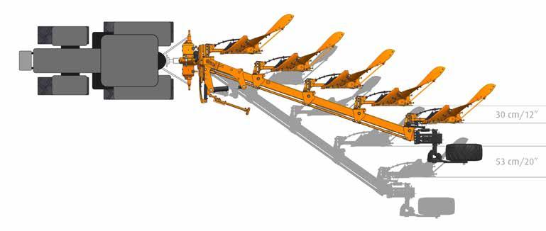 Durante el volteo en las cabeceras, un cilindro de secuencia incorporado en el bastidor principal reduce la tensión tanto en el tractor como en el arado. Este sistema de secuencia y/o memoria (Variante) asegura que el ajuste del ancho de surco deseado se mantenga después del ciclo de volteo del arado.