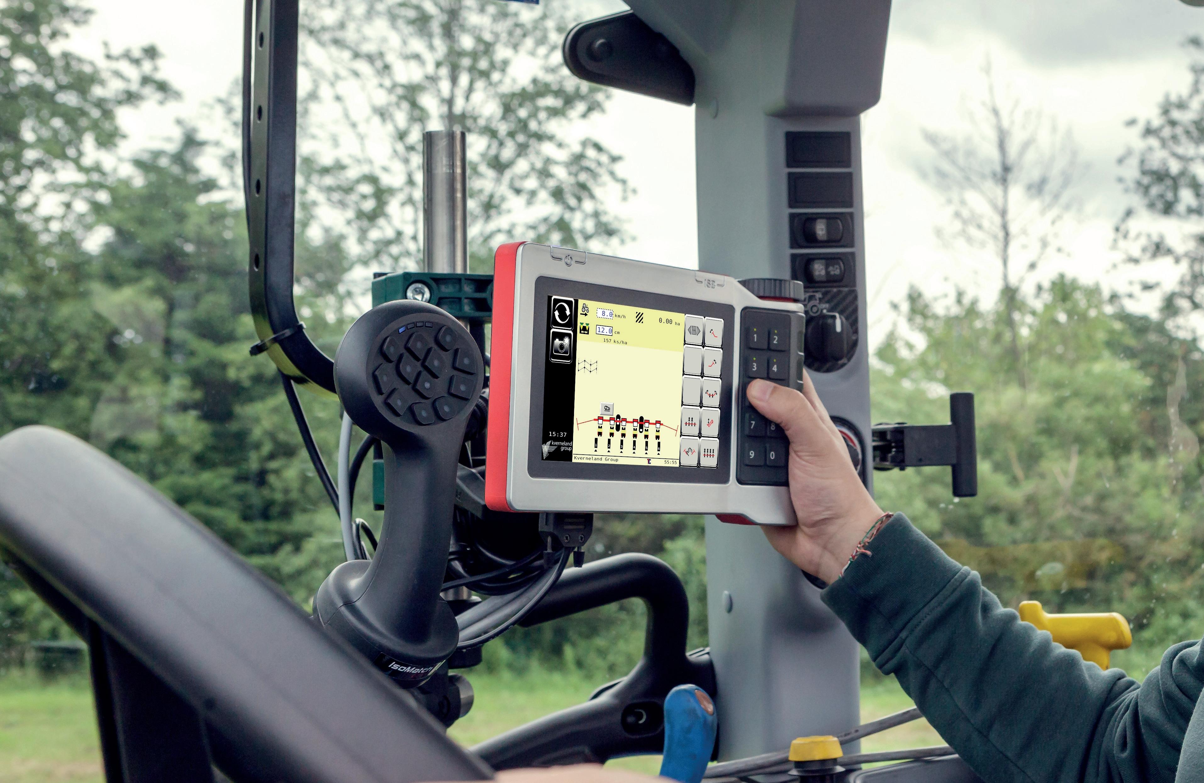 With its advanced hardware and software features, this 12-inch terminal provides the optimal solution for an all-inone control system inside the tractor cab .It is the centre for connecting all ISOBUS machines and a platform running precision farming applications and Farm Management Systems. It offers everything you need to get the maximum out of your machines and crops, as well as cost savings in fertiliser, chemicals and seeds by using automatic section control and variable rate control. With the unique dual screen functionality it gives you the opportunity to view and manage two machines and/or processes simultaneously.