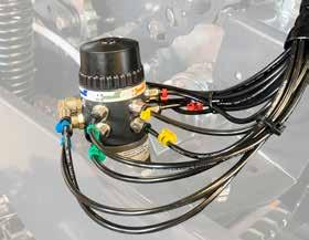 Automatic Chain Lube for Extended Life Keeping chains correctly lubricated is crucial for an extended lifetime. FixBale 500 is equipped with an automatic system supplying oil to each individual chain. The system is equipped with a generous sixlitres capacity tank, while the quantity of oil delivered to each outlet can be individually fine tuned to vary the amount of oil provided. Each oil pipe is colour coded for simple identification.