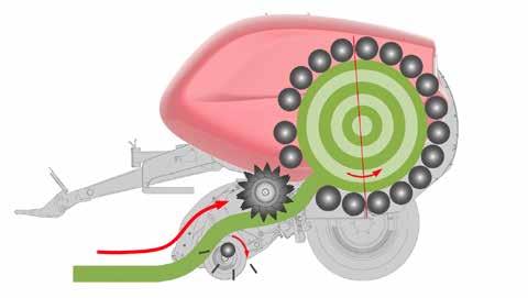 Production of consistent, high density bales in both wet and dry material is assured. Two rollers in the lower section of the main bale chamber spread the load, reducing stress and increasing working lifetime.