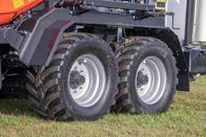 Strong and Durable Chassis Design FlexiWrap series models feature a strong wrap around chassis which has been optimised to minimise crop build-up. Durable tandem axles provide maximum stability on both road and field. Larger standard equipment 560/45R22.5 Vredestein flotation tyres provide a lighter footprint for reduced field compaction in wet conditions.