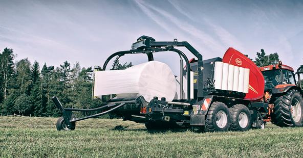 FlexiWrap kombinerar hög baldensitet med snabb och säker balöverföring. Snabb dubbelsatellitinplastning. Allt kontrolleras med Isobus.