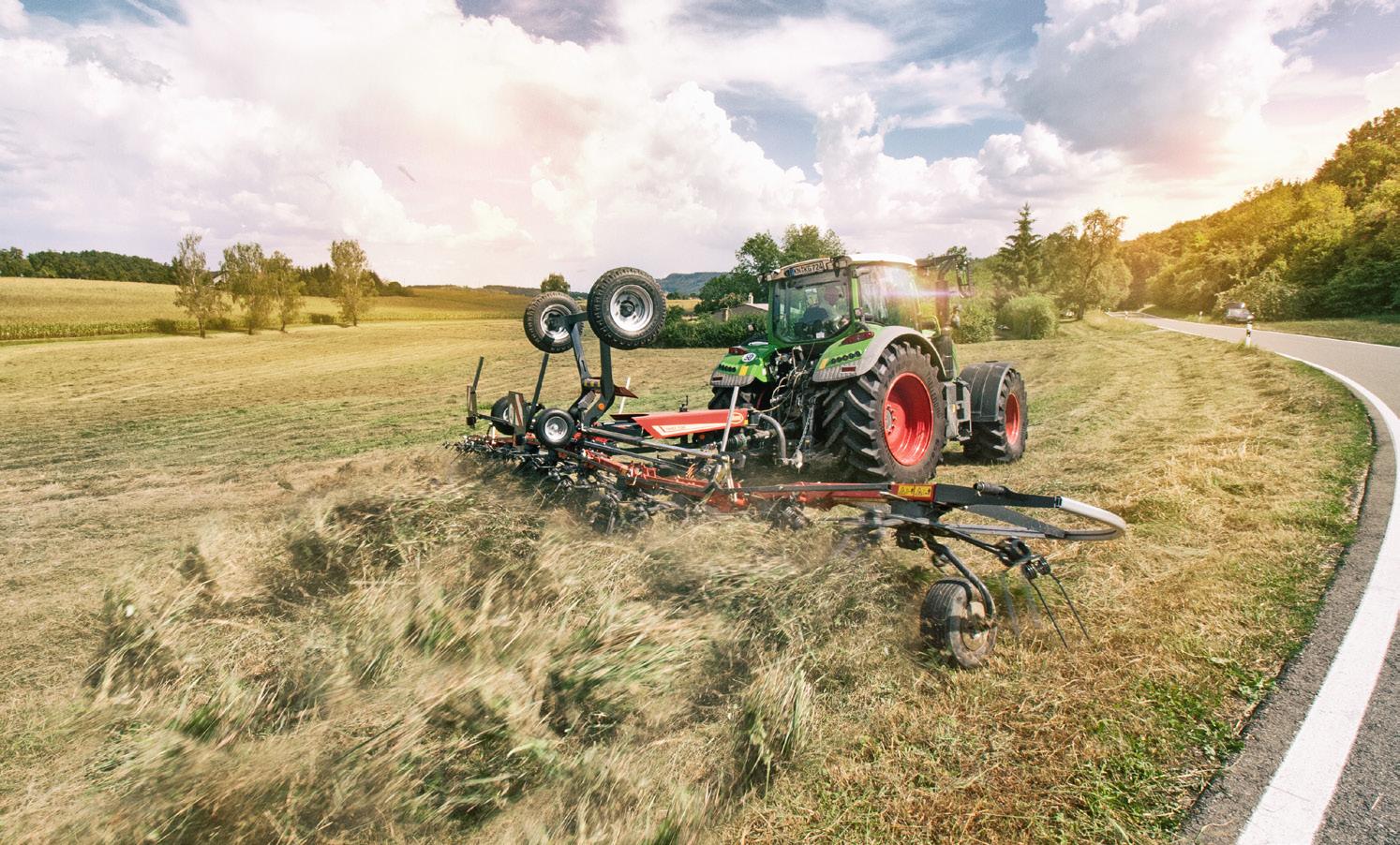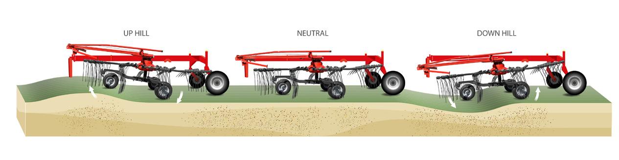 Systemet TerraLink Quattro har blivit en riktig legend när det gäller exakt markföljsamhet. En unik kombination av ett hjul ställ med 4-6 hjul och en fjädrande rotorbärarm ger perfekt räfsning även i ojämna förhållanden och i högre hastigheter. TerraLink Quattro-systemet ger tredimensionell kontroll på rotorn som får alla möjligheter att följa markens kontur.