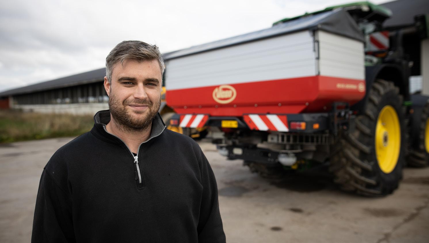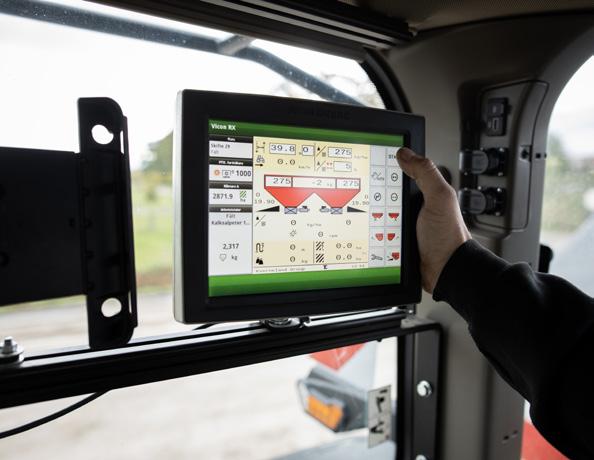 Gödningsspridaren Vicon RO-XXL Geospread levererades till gården i februari 2020 helt enkelt för att den gamla behövde ersättas. Just då var man på jakt efter en spri dare med 40 meters arbetsbredd och som samtidigt kunde bibehålla samma hastighet som en spridare med 24 meters arbetsbredd. Det kunde Vicon erbjuda. I samma veva hade Frans Pettersson även börjat ställa om till att använda sig av fasta körspår och att kunna använda styrfiler med variabel giva lockade. Vicon RO-XXL Geospread, som är ISOBUS-kompatibel och har utmatning med hög kapacitet, kunde matcha alla hans önskemål. − Alla körningar sammanställs och det blir mycket lättare att räkna hem kostnaden per hektar. Jag får fram exakt åtgång och systemet beräknar lagersaldo och så vidare. Allt går ut på att vara effektiv, det är en pressad bransch, och den här maskinen är en riktig tidbesparare – helt klart. Jag får med mig knappt fyra ton i spridaren och kör upp emot 200 hektar på en dag, även om jag inte har någon som lastar åt mig, säger Frans.