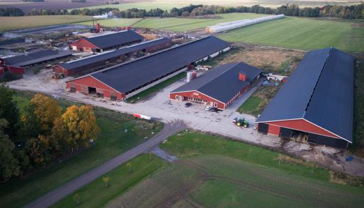 Mellan 20 och 25 anställda arbetar på gården en vanlig arbetsdag. Korna huserar i två ligghallar som rymmer cirka 600 kor vardera och mjölkas tre gånger per dygn i mjölkgrops system, i ett parallellstall med 60 platser. Tre till fyra anställda är på plats i gropen när det mjölkas. När en av de åtta grup perna med kor mjölkas, gödslas den gruppens utrymme i ligg hallen ut med kompaktlastare och så rullar det på. Enda gången det är uppehåll i mjölkgropen är när utrustningen diskas tre gånger per dygn. − Vi mjölkar upp till 220 kor i timmen när det flyter på bra. Hela driften är amerikansk-inspirerad. Det ska vara enkelt, driftsäkert och så lite teknik som möjligt egentligen. Vi har billiga koplatser med sand i liggsängarna. Det är bra för juverhälsan och djurhälsan generellt. Korna trivs bra med det. En bil och släp om dagen hämtar mjölk här. Det innebär 41-42 kubik per dygn. Nu är vi uppe på en accep tabel avkastning. Det ligger mycket jobb bakom så det är kul, säger Frans.