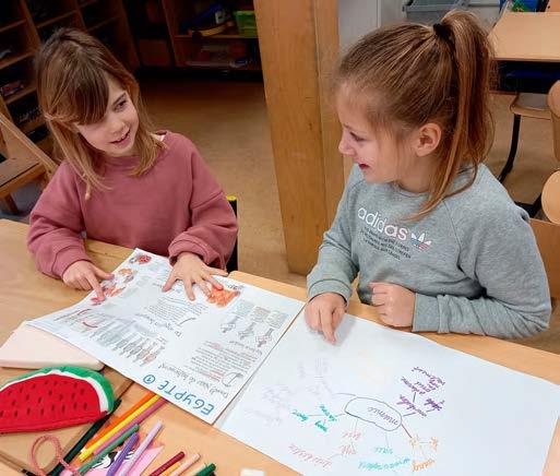 Kim: ‘In totaal zijn we drie weken bezig met een onderwerp. In de laatste week krijgen de kinderen de gelegenheid om de eindopdracht te maken. De eindopdrachten vragen om de aangeleerde kennis zelf toe te passen en iets nieuws te creëren. Ook dit zijn vaardigheden die hoog in de taxonomie van Bloom staan. Ik reik mijn collega’s altijd verschillende ideeën aan voor de eindopdrachten en ze zijn vrij om te kiezen. Sommige collega’s laten de leerlingen zelfs kiezen uit verschillende eindopdrachten. Voorbeelden van eindopdrachten zijn: het maken van een lapbook, het