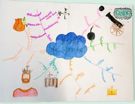 Om de tekst beter te begrijpen, maken de kinderen een mindmap over het onderwerp. Zo oefenen ze het samenvatten en het maken van een schematische weergave van informatie en zijn ze keer op keer de teksten opnieuw aan het lezen. Doordat ze zelf aan het denken worden gezet over de tekst, voelen ze de behoefte om hun mindmap aan te blijven passen. Ook de tweede tekst die bij het onderwerp aan bod komt, wordt verwerkt in deze mindmap. Zo ontstaat uiteindelijk één overzicht.