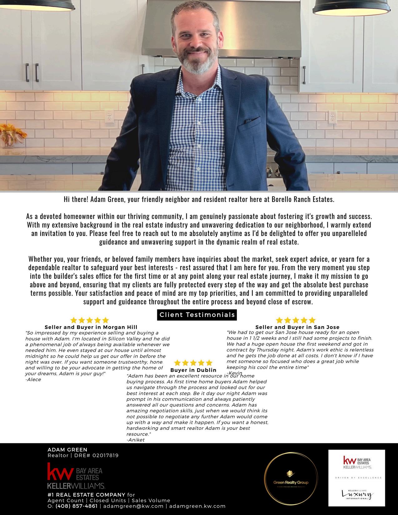 Hi there! Adam Green, your friendly neighbor and resident realtor here at Borello Ranch Estates