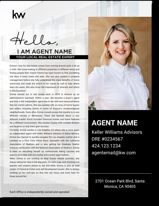 Full Design Services for all Collateral Digital and Print. Hands-on KWA Partner IntegrationExample using HC in Agent Listing Presentation.