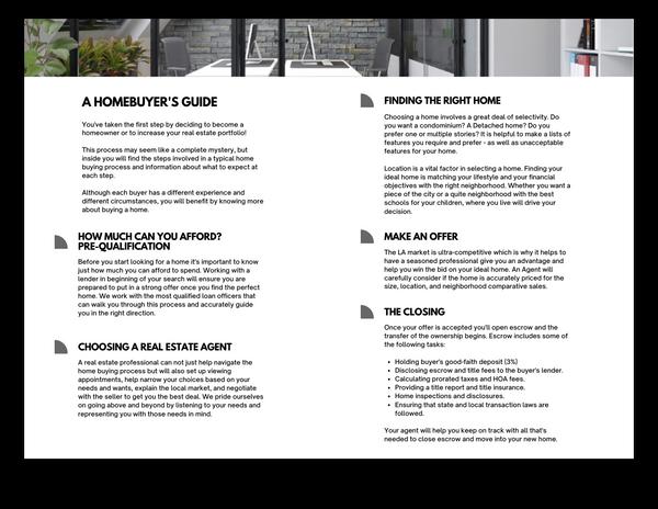 The marketing package templates are used for illustrative purposes only. Your marketing package will be similar to the style you choose from the design options