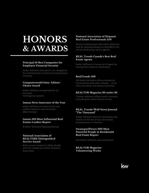 Keller Williamsbelievesthatrealestateisalocalbusiness,driven by individual agents and the market share they’ve earned. This conviction is at the core of everything we do and why we will remain forever committed to being a powerful platform upon which agents can build their brand, grow their business, and fund biglivesforthemselvesandtheirfamilies.