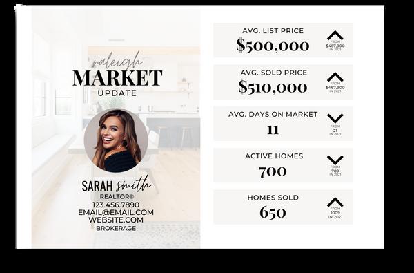 Monthly digital market report for your area, Additional pages can be added (including: About Me, My Mobile App Page, Client Testimonial Page, Schedule a Meeting Page)