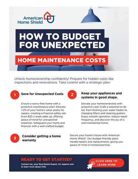 Ensure a worry-free home with a proactive maintenance plan! Allocate 1-2% of your home's value yearly for repairs, creating a financial safety net. Even $20 a week adds up, offering peace of mind for unexpected expenses. Safeguard your home and finances with a well-crafted budget.