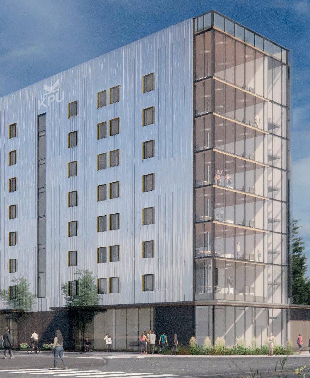 shared spaces and essential supports, helping make campus life comfortable, connected, and vibrant. Construction is expected to begin in early 2027, with a total project cost of nearly $144 million, funded primarily through provincial investment, with $25 million coming from KPU.