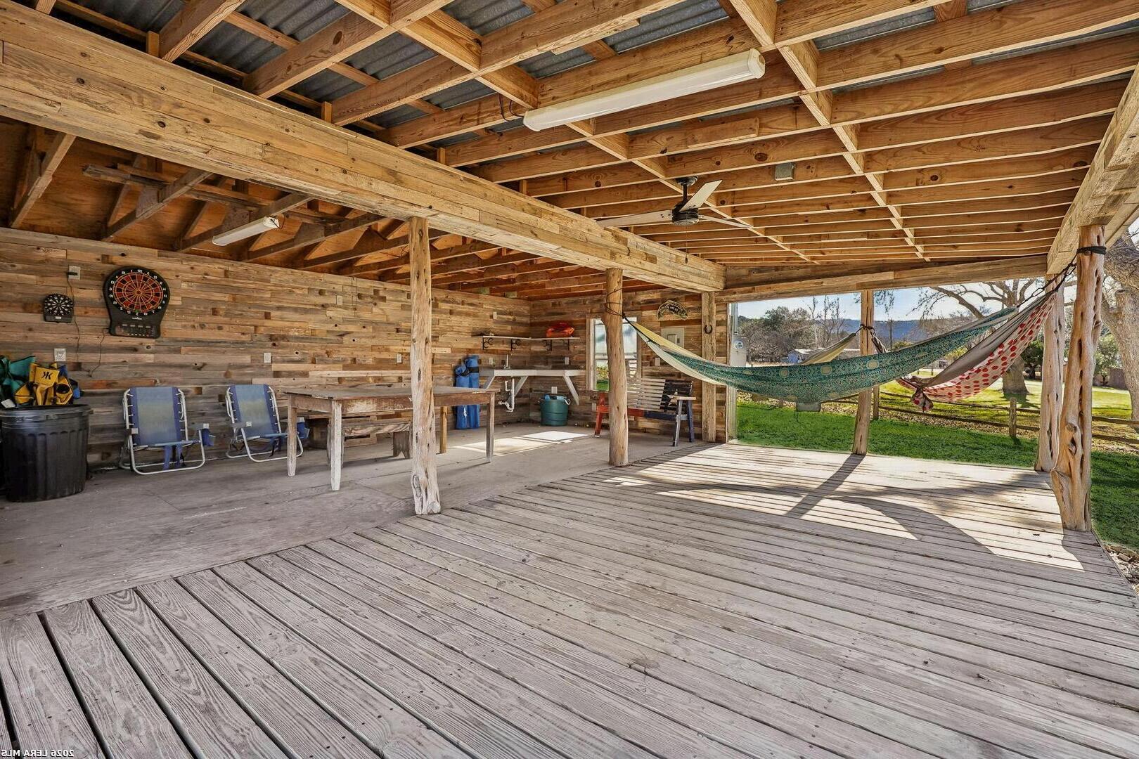 A rare 1 41-acre Guadalupe River retreat with 310 feet of wide waterfrontage Designed for true river living, this property features a concrete dock, elevated patio, wraparound deck, and an open-air cabin for gathering and relaxing. Inside, vaulted beamed ceilings and expansive windows showcase stunning river views. Private and beautifully shaded, this home offers space, serenity, and endless opportunities for entertaining and retreat. This is Guadalupe living at its finest.