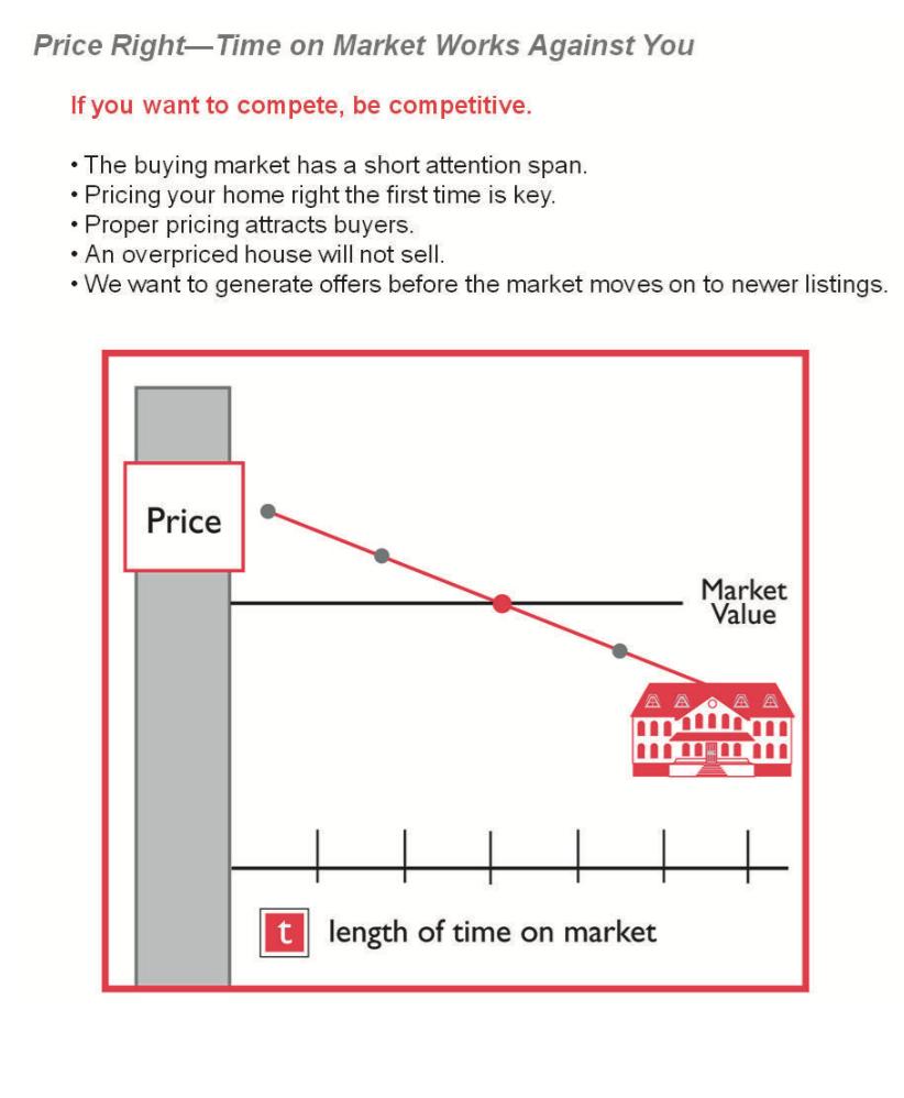 • Overpricing lengthens marketing time, and invariably results in a lower selling price than would have been otherwise obtained.