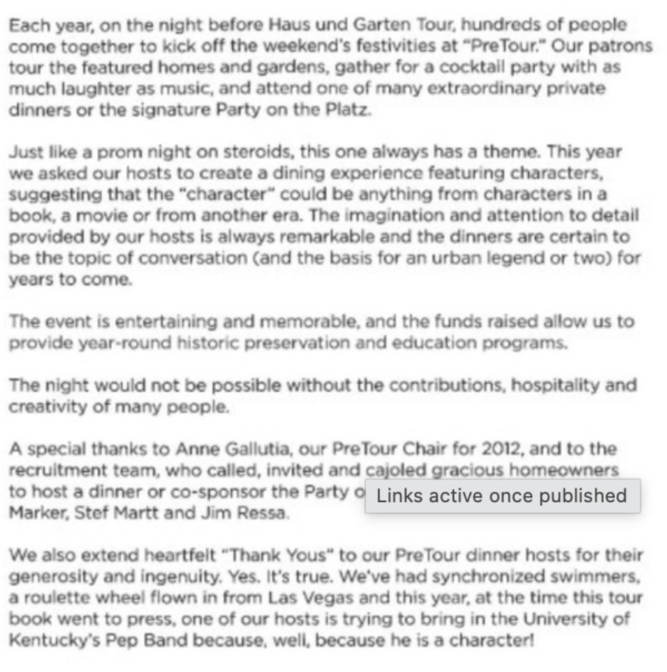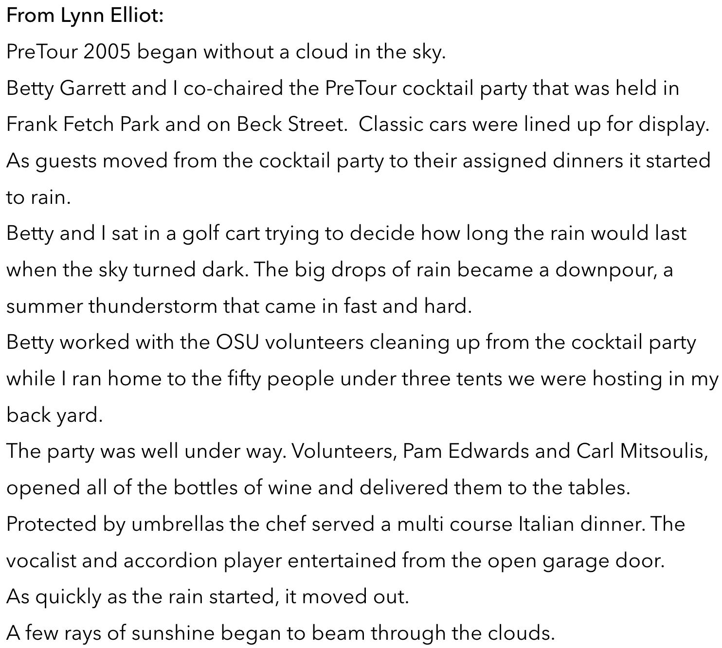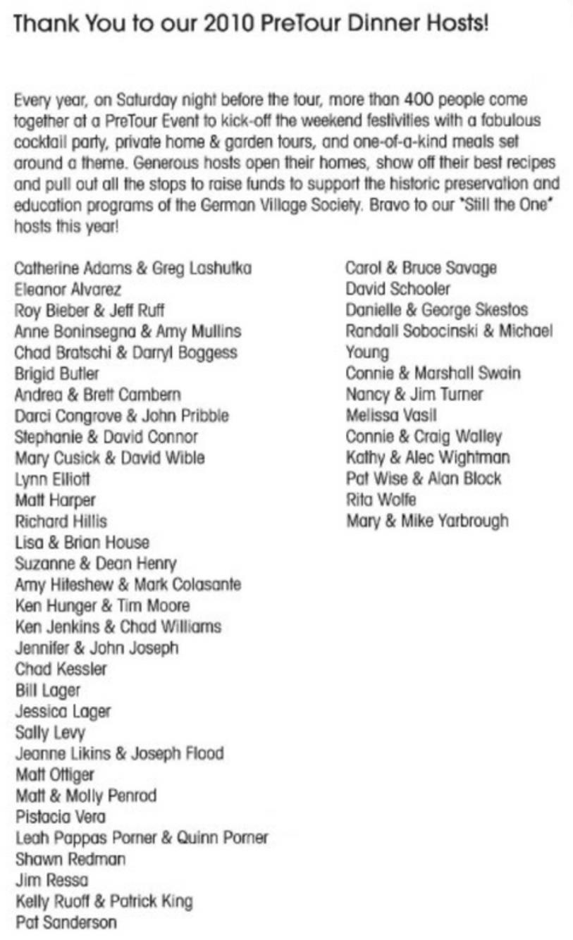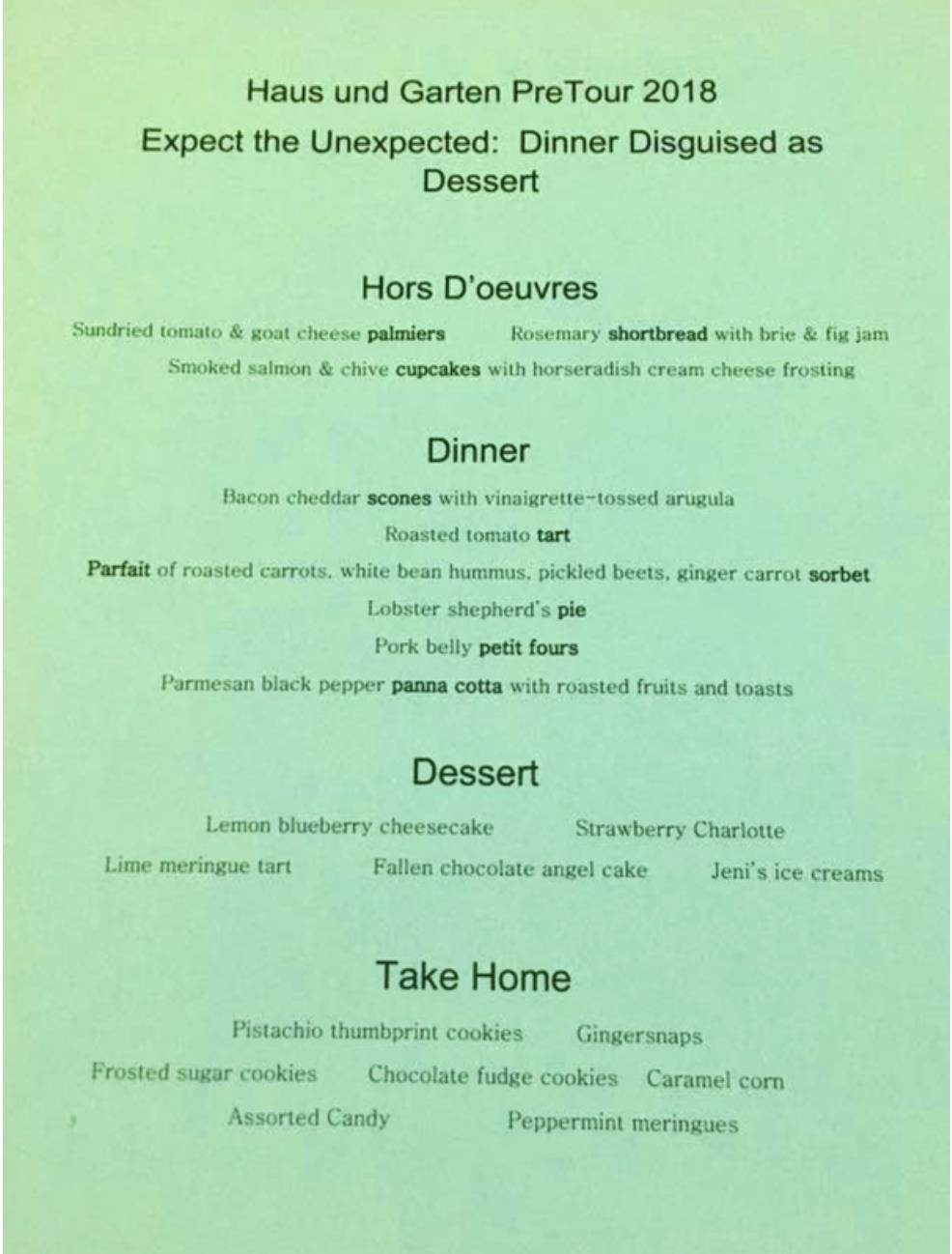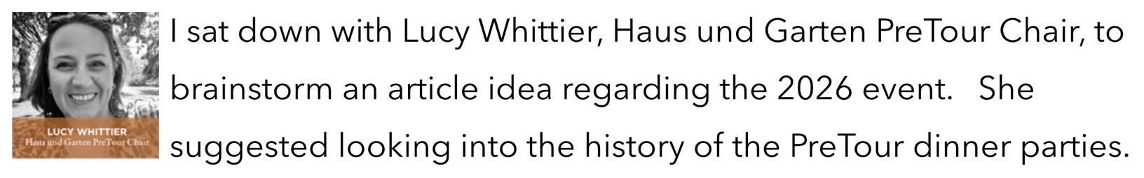 Reminiscing Haus und Garten PreTour Dinners