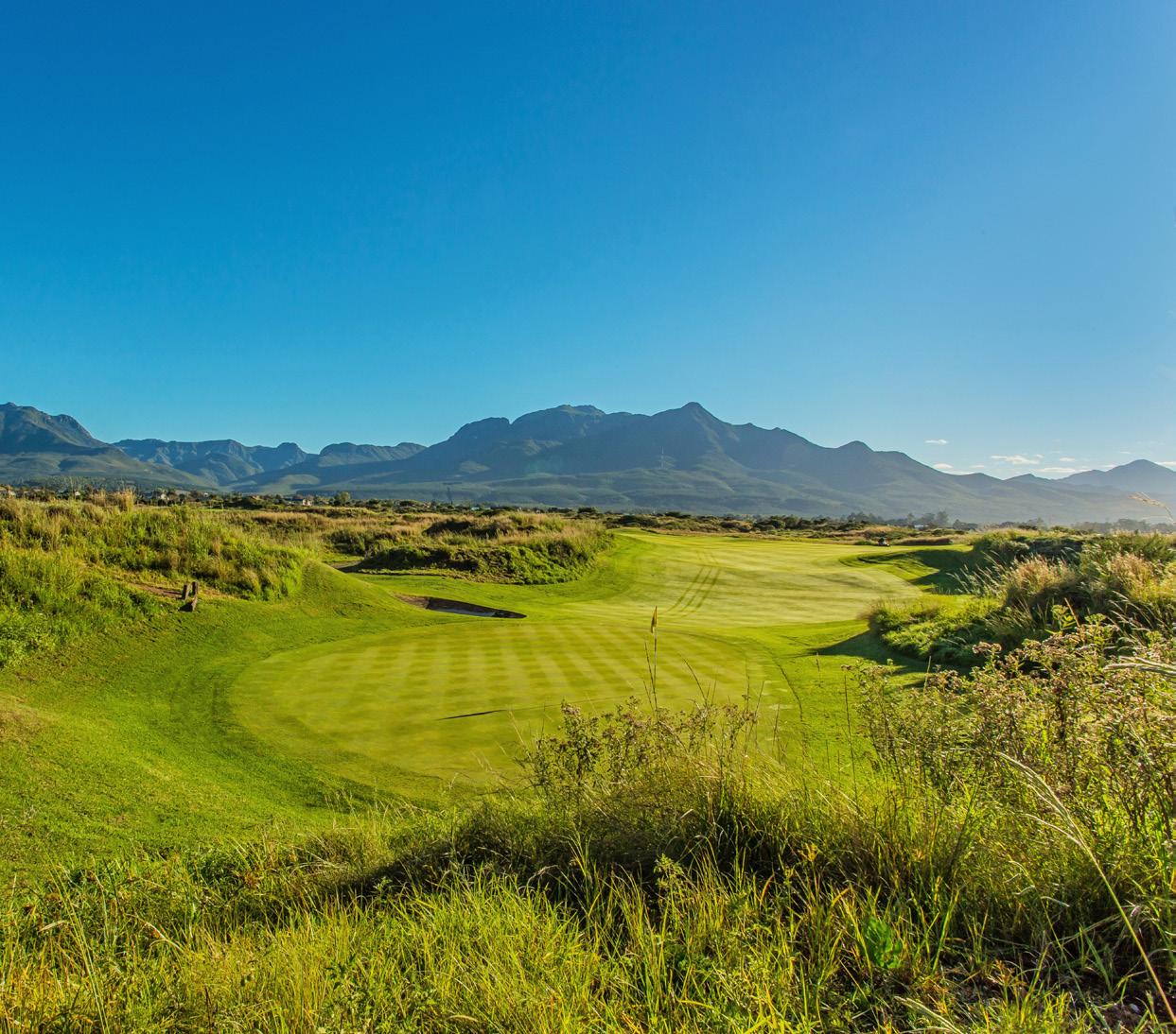 One of its most striking holes is the par-3 14th, which boasts a massive 76-metre green – the largest in Africa – and is surrounded by indigenous shrubs that echo the mountain range’s contours. The course also features a signature 7th hole, a par 3 with an island-style green protected by water and bunkers.