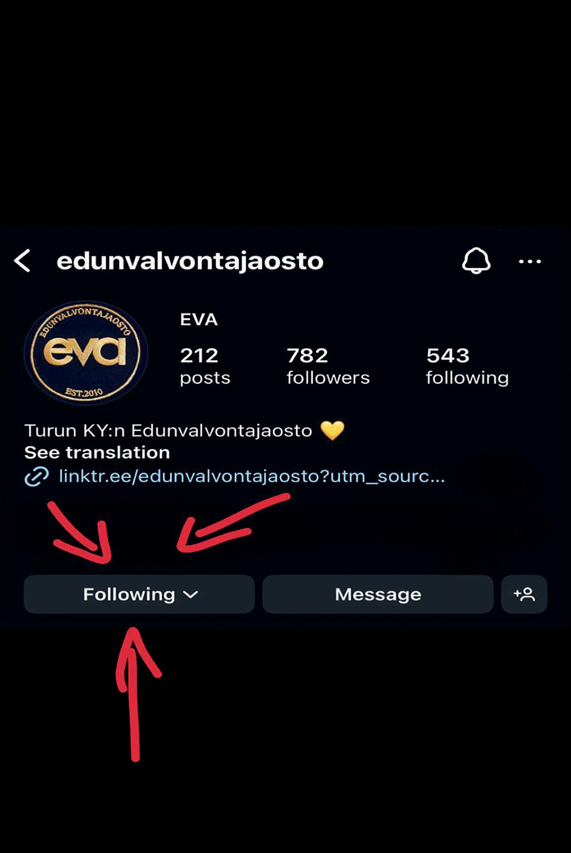 Tiukkojen budjettien ja säästötoimien aikana yhteistyökumppaneiden saaminen on monelle toimijalle erittäin tärkeää. Yhteistyökumppanit monesti pyytävät tai tarkastavat Instagramin seuraajien ja sähköpostilistan tilaajien määrän pohtiessaan yhteistyötä. Nämä asiat ilmoitetaan myös TYY:lle toimintaavustusta hakiessa eli seuraamalla toimijoita ig:ssä voit suoraan vaikuttaa siihen, kuinka isolla summalla TYY tukee heitä. Myös postausten reagoimalla voit algoritmin kautta vaikuttaa, että muutkin näkevät postauksen.
