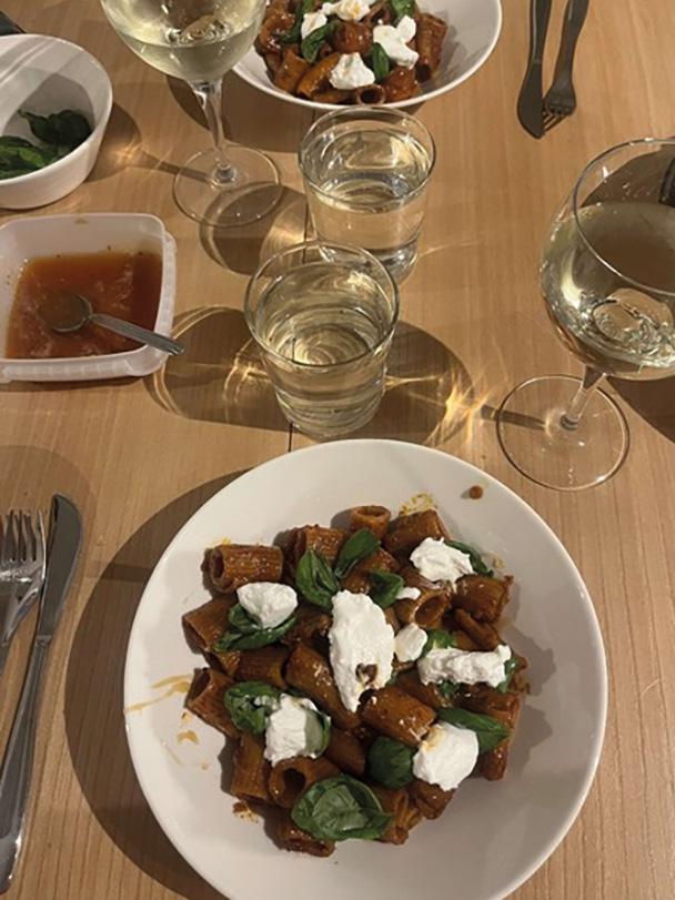 Jees, sit seuraavaks heität pastat tomaatit ja kastikkeen sekasin. Päälle viel sitä ricottaa, basilikaa ja valutat hot honeyy päälle ja se on siin.