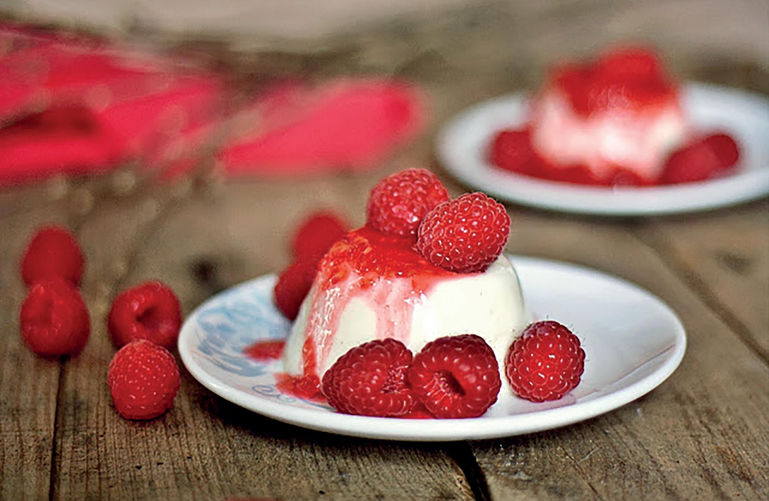 Jälkiruoka: Vadelma-valkosuklaa pannacotta