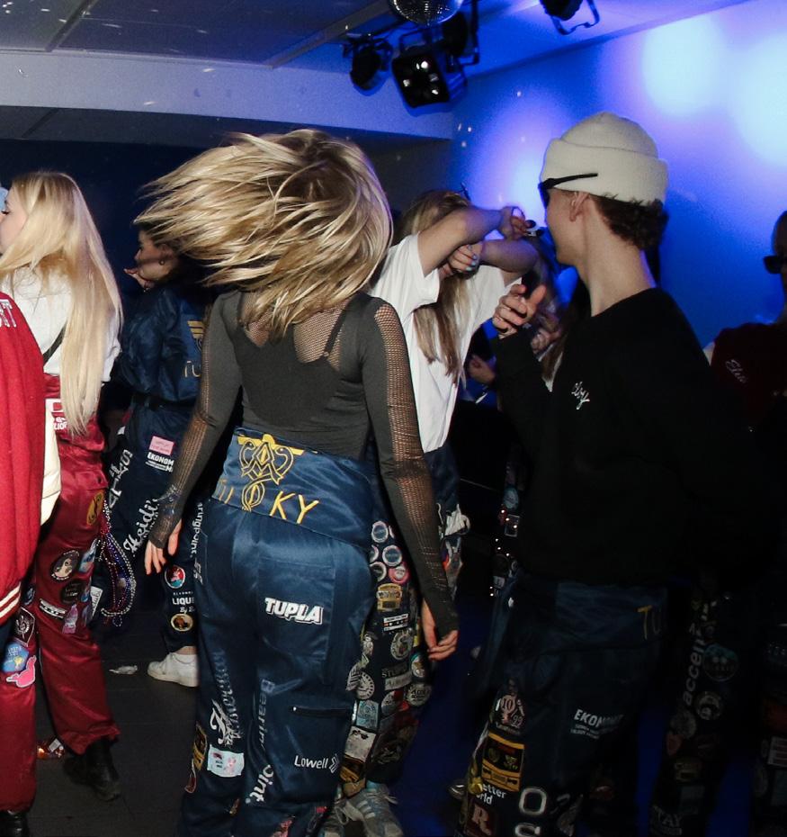 Overalls are a huge part of the Finnish student culture. You can see students all around Finland wearing overalls in different colours, that indicate where and what they study. We at Turun KY for example have navy blue overalls. We collect badges from different events and clubs we belong in and sew them onto the overalls, and everyone's overalls end up being a unique representation of them. There are also some traditions with overalls, for example only washing them while you are wearing them.